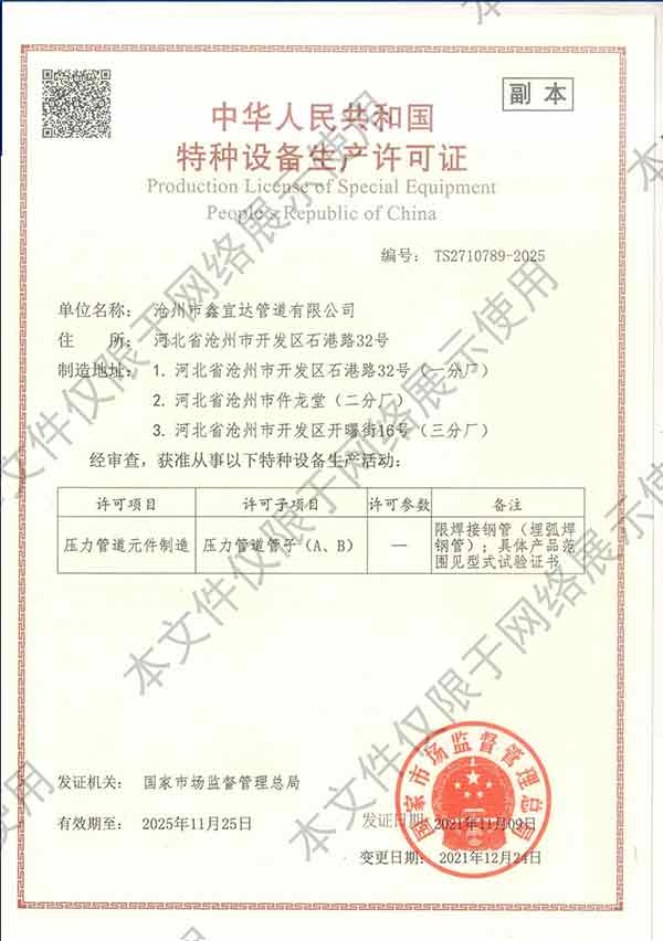 滄州市鑫宜達管道有限公司成立于2003年7月,坐落于滄州經濟開發(fā)區(qū),占地面積40萬平方米,注冊資金1.81億元,是集螺旋鋼管生產、防腐加工以及無縫鋼管、卷板、帶鋼等品類鋼材經營銷售于一體的工貿型企業(yè)。公司現(xiàn)有員工400多人,其中,中高級技術職稱的人員達120余名。 滄州市鑫宜達管道有限公司擁有9條螺旋鋼管生產線和3PE防腐生產線,可生產直徑219--3640mm,壁厚5.5--28mm,最高鋼級X100的各種規(guī)格防腐螺旋鋼管...